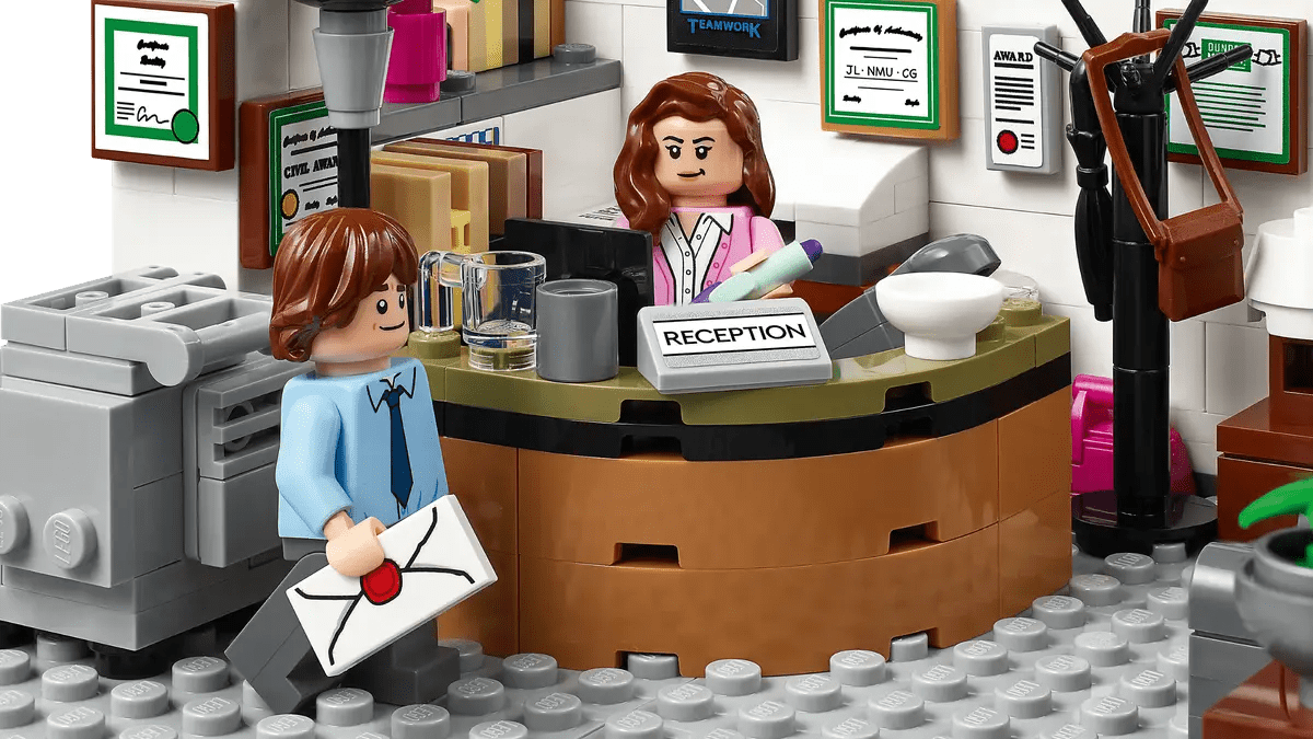 The set includes 15 LEGO minifigures: Michael Scott, Dwight Schrute, Jim Halpert, Pam Beesly, Ryan Howard, Angela Martin, Oscar Martinez, Kevin Malone, Stanley Hudson, Kelly Kapoor, Phyllis Lapin Vance, Meredith Palmer, Creed Bratton, Toby Flenderson and Darryl Philbin, plus a LEGO figure of Angela’s cat Garbage. There are also lots of accessory elements referencing hilarious moments, including a stapler in gelatin, Golden Ticket, Dundie trophy and ‘World’s Best Boss’ mug.